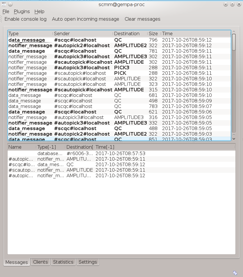 scmm is the messaging monitor, the graphical interface to scm. It allows to view the messages from all modules sent around by the SeisComP messaging system. Therefore, scmm can be used to debug configured message groups and module connections, e.g. in a system with several processing pipelines and specific message groups.