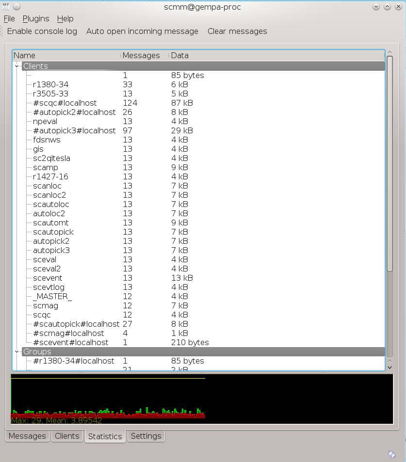 In addition, scmm allows to view the content of single messges as well as the memory consumption and other statistics of all modules connected to the SeisComP messaging system.