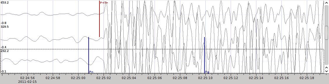Amplitude waveform review (external window): Waveform review for measuring amplitudes and for computing magnitudes.