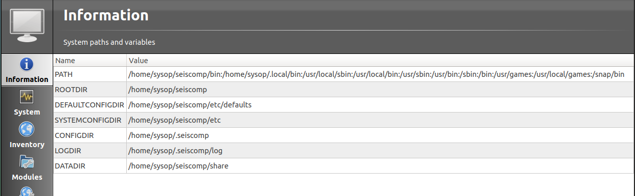The list of internal SeisComP variables can also be read in the information panel of scconfig.