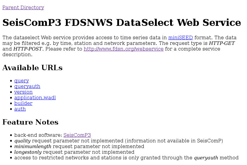 Information screen shown by fdsnws-dataselect at http://localhost:8080/fdsnws/dataselect/1/¶