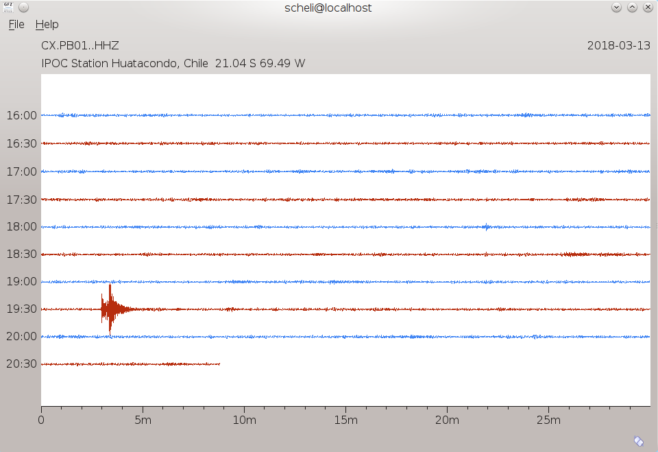 scheli visualizes waveforms from a single stream or multiple stations mimicking a drum-recorder plot (see scheli in GUI mode):
